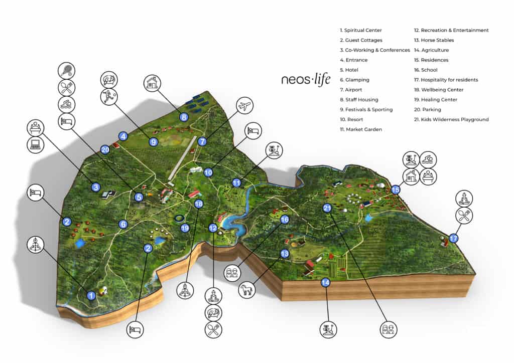 Neos·life is a groundbreaking concept in sustainable living, aiming to create a self-sufficient, lockdown-safe village for 1,000 people. This visionary project promises harmony with nature, self-sustained resources, and a strong sense of community. Key features include independent water and energy systems, an organic farm, a well-being and healing center, educational facilities, residences, and a retreat hotel and resort. Located in the scenic Alentejo region in Portugal, this project aims to birth a new civilization model. For more information, visit www.neos.life.